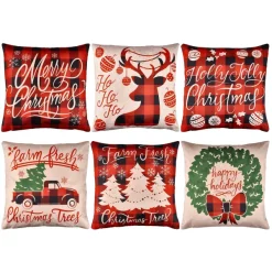 Joiedomi 4pcs Buffalo Plaid Reindeer And Truck Pillow Covers