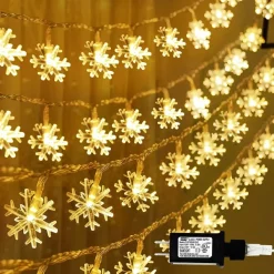 Joiedomi 2×40 LED Warm White Led Snowflake String Lights 16ft