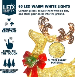 Joiedomi 3D Fabric LED Lighted Reindeer With Sleigh Decorations 5ft