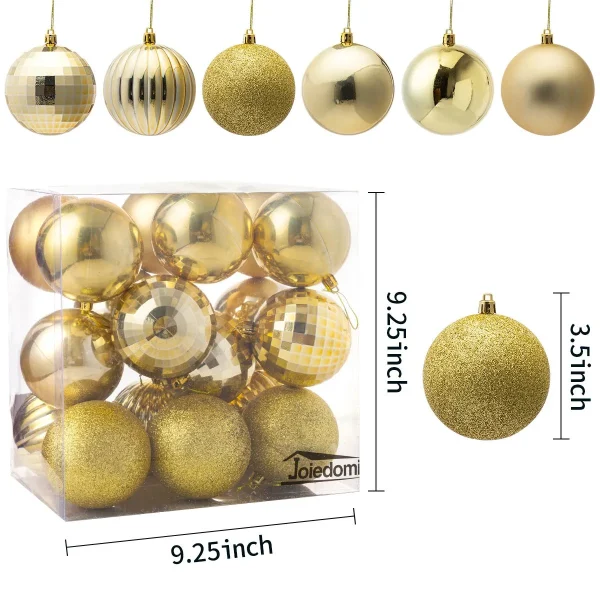 • Our Fantastic Shatterproof Christmas Ornaments include 6 shiny balls, 3 glitter balls, 3 disco balls, 3 matte balls, 3 stripes balls. The main colors are baby blue, teal, rose gold, gold, silver, red. Each color is bright and beautiful and perfect for Christmas indoor and outdoor decorations!
