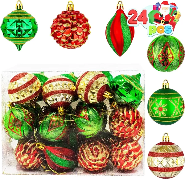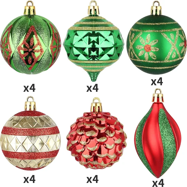 • Our Shatterproof Christmas Ball Ornaments Set includes 12 6CM/2.36’’ green and gold glitter balls, and 12 red glitter balls. Each color is bright and beautiful and perfect for Christmas decorations!