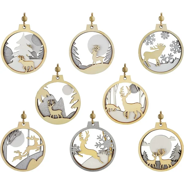• Wooden reindeer Christmas ornaments include 24 packs of Christmas Wooden Hanging Reindeer Ornaments with 8 different designs. The hanging wooden ornaments are made of natural wood to make them look classy. Perfect for Christmas Tree Indoor/Outdoor decorations.