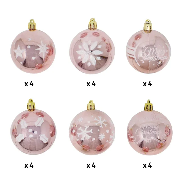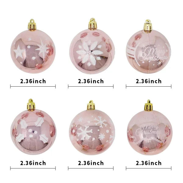 • Our Rose Gold Glitter Ornaments include 24pcs 2.36’’ shiny balls. Each Christmas ball has its own unique print, and there are 6 different designs in total, including snowflakes, merry Christmas, stars, and tree elements. The main colors are baby blue, blue, rose gold, gold, and red. Each color ball ornament is wonderful for your Christmas decorations!