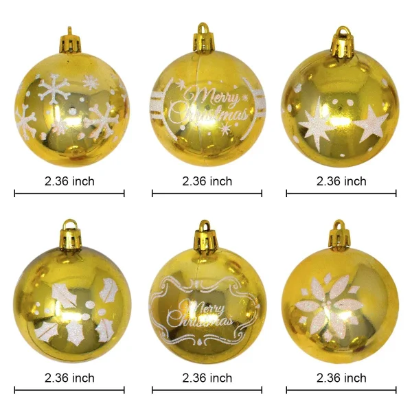 • Gold Christmas ornaments include 24pcs 2.36’’ shiny balls. Each Christmas ball has its own unique print, and there are 6 different designs in total, including snowflakes, merry Christmas, stars, and tree elements. The main colors are baby blue, blue, rose gold, gold, and red. Each color ball ornament is wonderful for your Christmas decorations!