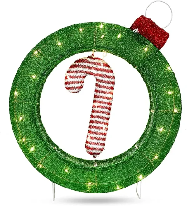 The candy cane Christmas decor is a beautiful decoration that can be used both indoors and outdoors. This 2 Feet Tall Tinsel Candy Cane Ornament with 30 LED warm white lights in clear wire, metal stakes, and zip ties are made of superior quality material with super brightness. This a great way to decorate your home this holiday season. Our Candy Cane Christmas Yard Light is a great addition to any holiday decor. Brighten up your home, garden, or patio with our endearing candy cane design. This candy cane DIY light is easy to set up and can be used indoors or outdoors so you can enjoy it year after year!