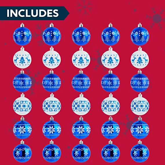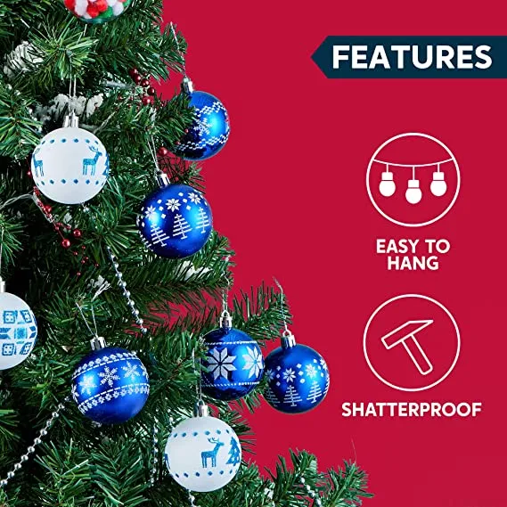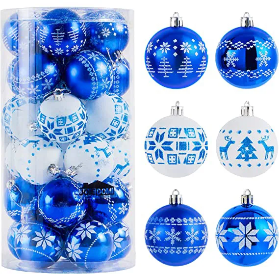 • Blue and white Christmas balls include 30pcs 6cm/60mm blue and white assorted Christmas ball ornaments.