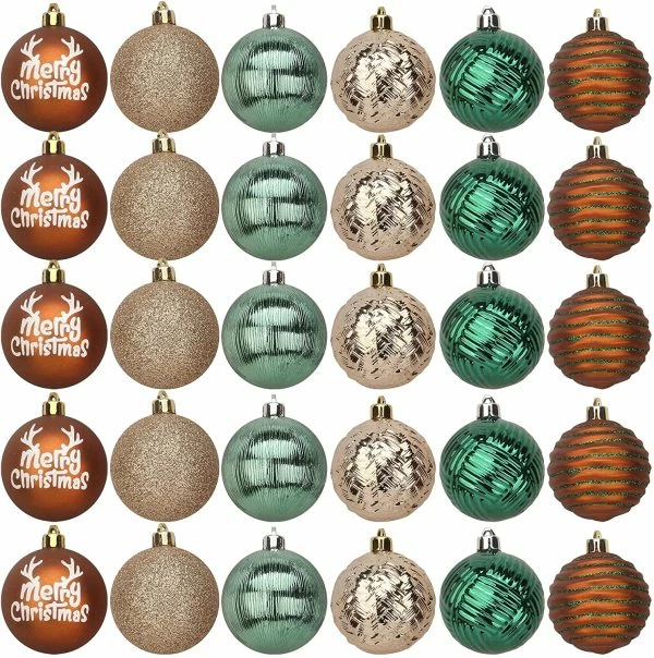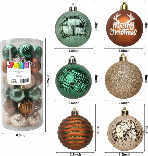 • Our Green And Gold Ornaments Include 5 Golden Matte Balls with Merry Christmas, 5 Green Weave Balls, 5 Golden Glitter Balls, 5 Golden Swirl Balls, 5 Golden Weave Balls, and 5 Green Texture Balls. Each Color Is Bright And Beautiful And Perfect For Christmas Indoor And Outdoor Decorations!