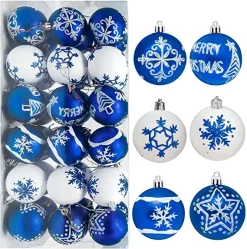 - SUPER VALUE PACK. 60mm 36ct Deluxe Christmas Ball Ornaments – Blue & White Ornaments Set includes 36pcs 60mm blue and white christmas ball ornament