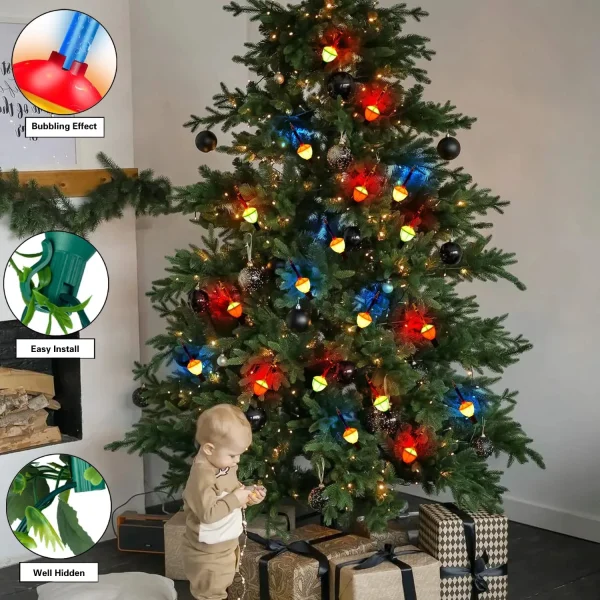 The bubble light string Christmas tree feature 11-inch bulbs spaced 11 inches apart, so theyβre perfect for decorating large spaces like porches, front doors, and windows. The main advantage of using this type of light over more conventional forms is that they can be made in any shape or size. They can also be customized to create an unusual effect, such as when they are used in large numbers to create a wall-covering effect. This kind of lighting has become very popular because they are cheap to produce, easy to install, and great value for money! This stylish set of bubble string lights will be the finishing touch for your holiday home decor!