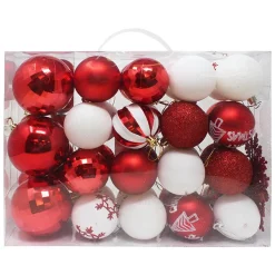 • Christmas ornament includes 50 pcs Assorted Christmas Ball Ornaments of 10 Red Matte Balls, 10 White Balls, 7 Red Shiny Balls, 7 Disco Balls, 4 Glitter Balls, 3 Swirl Balls, 3 Hexagram Snowflake Balls, 3 Christmas Tree Balls, 3 Red Snowflakes. Perfect for indoor and outdoor decorations for this Christmas Season. Measuring 1.57, 2.36, and 3.15 inches.