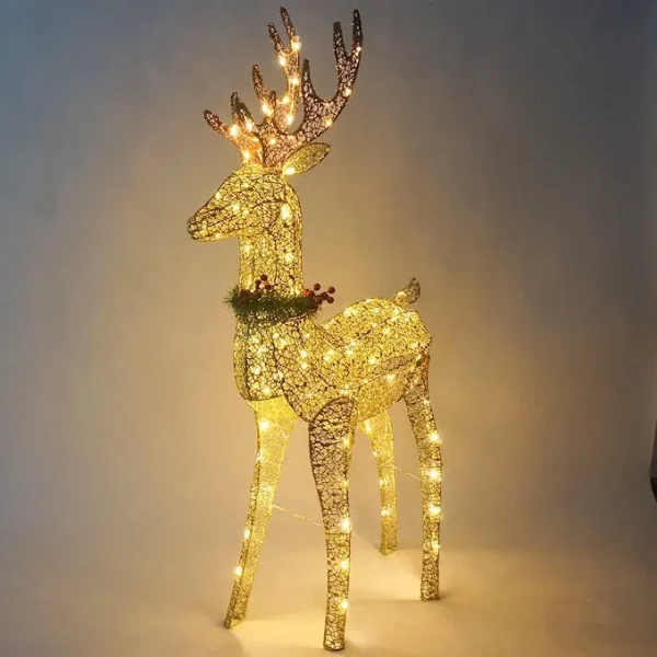 - Our Buck Yard Light includes a 5 Feet Tall Fabric Gold Buck with 100 LED Warm White Lights in Clear Wire, Metal Stakes, and Zip Ties. Made of Fabric Material.