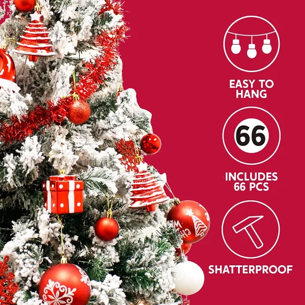 This red and white Christmas ornaments set is made of high-quality plastic materials that are shatterproof and safe for kids and pets. Our assorted Christmas ornaments set includes 12 Red Glitter Balls, 12 Red Shiny Balls, 6 Red Matte Balls, 6 Christmas Trees, 4 Swirls Balls, 4 Bells, 4 Gift Boxes, 3 Snowflake Balls, 3 Christmas Tree Balls, 3 White Snowflakes, 3 Red Snowflakes, 3 Diamond Plaid Balls, 2 Candy Canes & 1 Red Star Tree Topper. Have a fantastic Holiday, with these premium-quality Christmas ornaments!
