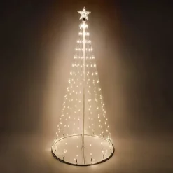 - Our Christmas LED Yard Lights includes a 6 Feet Tall Animated Lightshow Cone Tree with 275 LED Warm White Lights in Clear Wire, and 4 Metal Stakes.