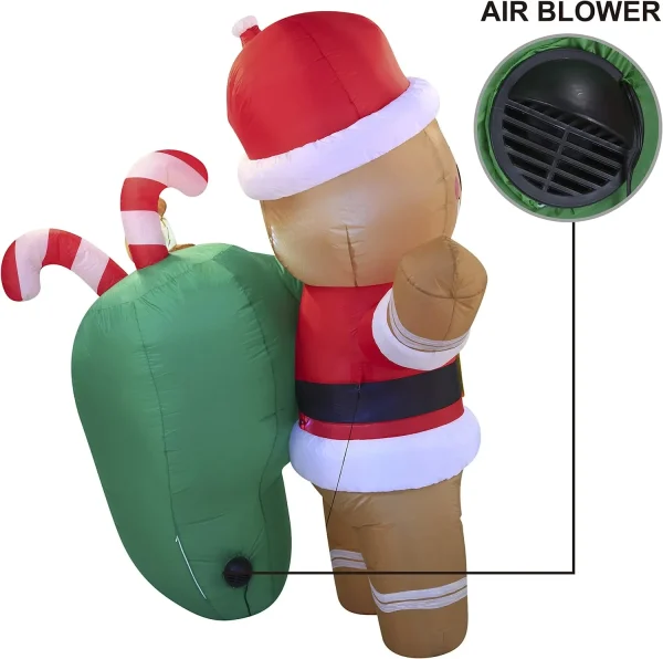 - 6 Feet Tall Santa Helper Gingerbread Man Inflatable comes with an extended cord, ground stakes, fastened ropes, built-in sandbags, and a plug with UL certification.