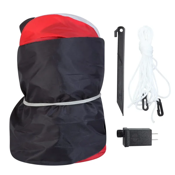 • 6 Feet Long Weiner Dog Eyes Covered by a Christmas Hat Inflatable comes with an extended cord, ground stakes, fastened ropes, built-in sandbags, and a plug with UL certification.