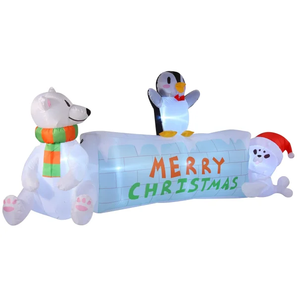 • Inflatable merry Christmas sign comes with an 8 Feet Long Ice Bricks Banner Inflatable Merry Christmas Sign includes an extended cord, ground stakes, fastened ropes, built-in sandbags, and a plug with UL certification.