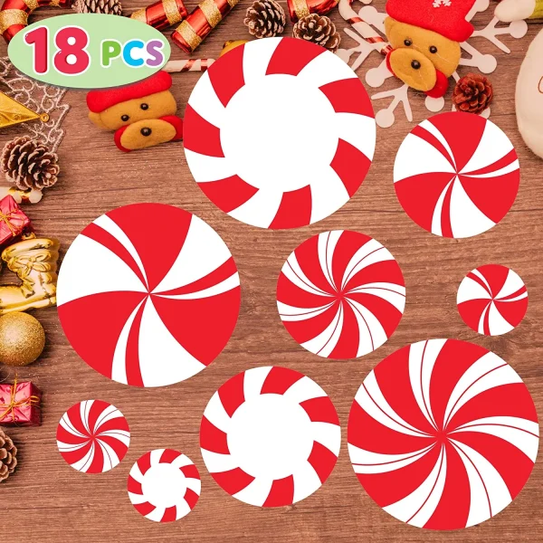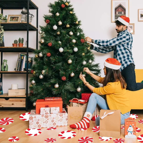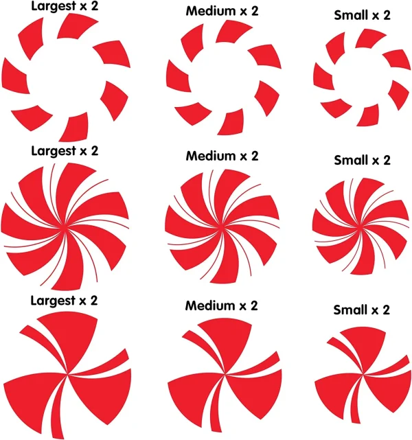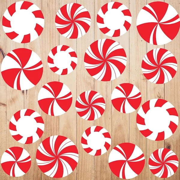 • Peppermint floor decals include 18 pieces of Holiday Floor Sticker Decor in 3 different designs and sizes. Each sticker measures 7″, 10″, and 12″ inches.