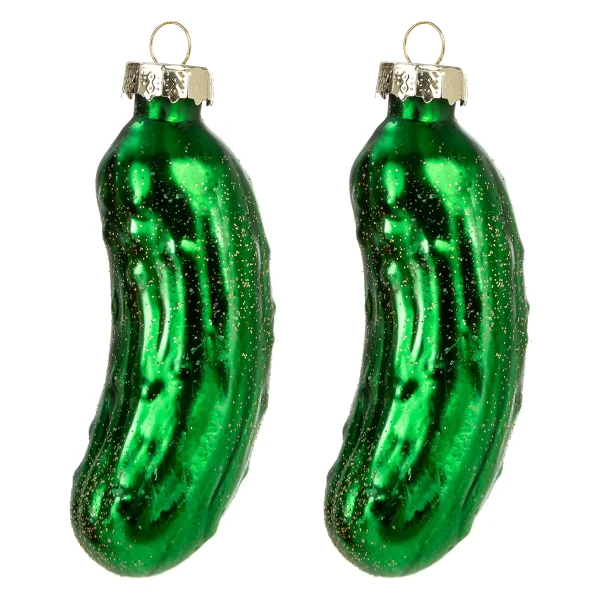 • Glass Christmas pickle ornament includes 2 pieces of pickle in hand-painted style. They are glass-blown ornaments based on the entity. The size of the pickle is 3.4 inches x 1.05 inches.