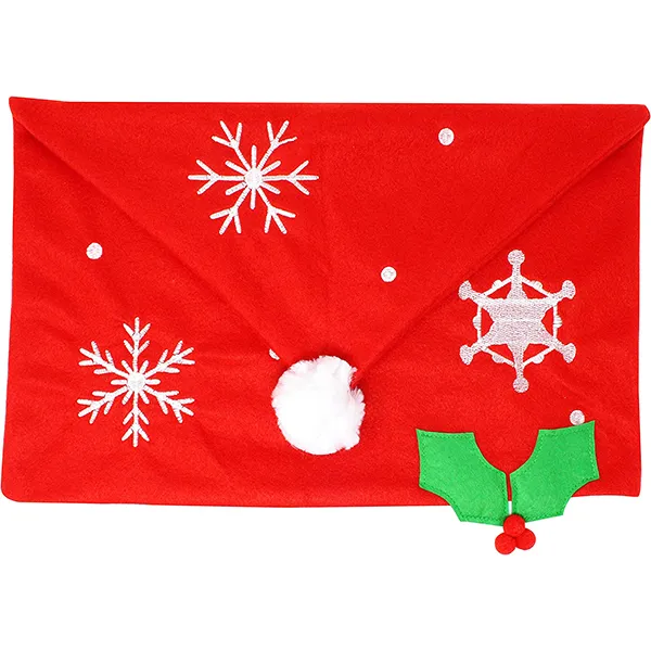• Christmas dining chair slipcovers come with 6 pieces set that include 4 chair covers and 2 refrigerator door handle covers. The chair covers itself in a Santa hat design w/ Snowflakes and Mistletoe embroidered patches. Refrigerator door handles covered in Santa dress design.