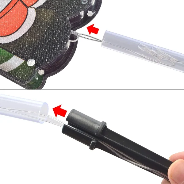 - Total 25″ high, Santa is 13″ and lighted tube is 12″