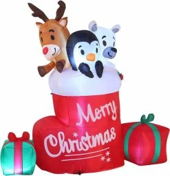Joiedomi 6ft Tall LED Inflatable Dinosaur Holding A Stocking