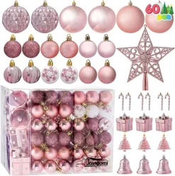 Joiedomi 60pcs Assorted Christmas Ornaments Rosegold And White