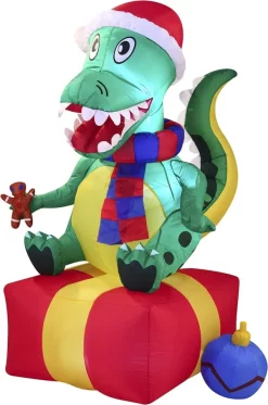 Joiedomi 6ft Inflatable LED Christmas Dinosaur Sitting On A Gift
